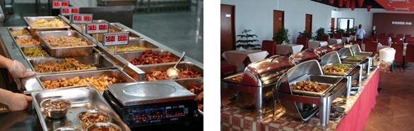 如果贵方每餐人均餐标在15元以上,我们将考虑采取此种形式。每餐菜品不少于20种,除主荤菜由我方工作人员酌情掌握外,其余菜品均由就餐者根据个人口味及食量自盛。此外,现场还有主食、粥、汤、水果、点心、酸奶等十余种供选择。